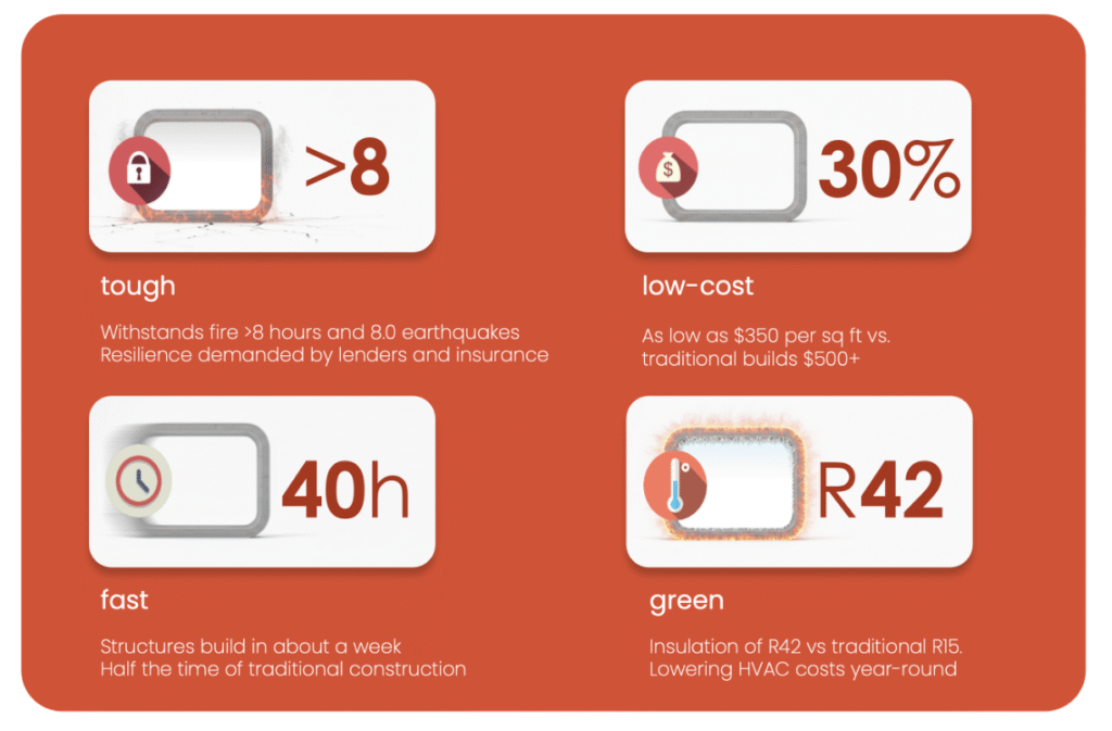 As low as $300 per sq ft vs traditional builds up to $500